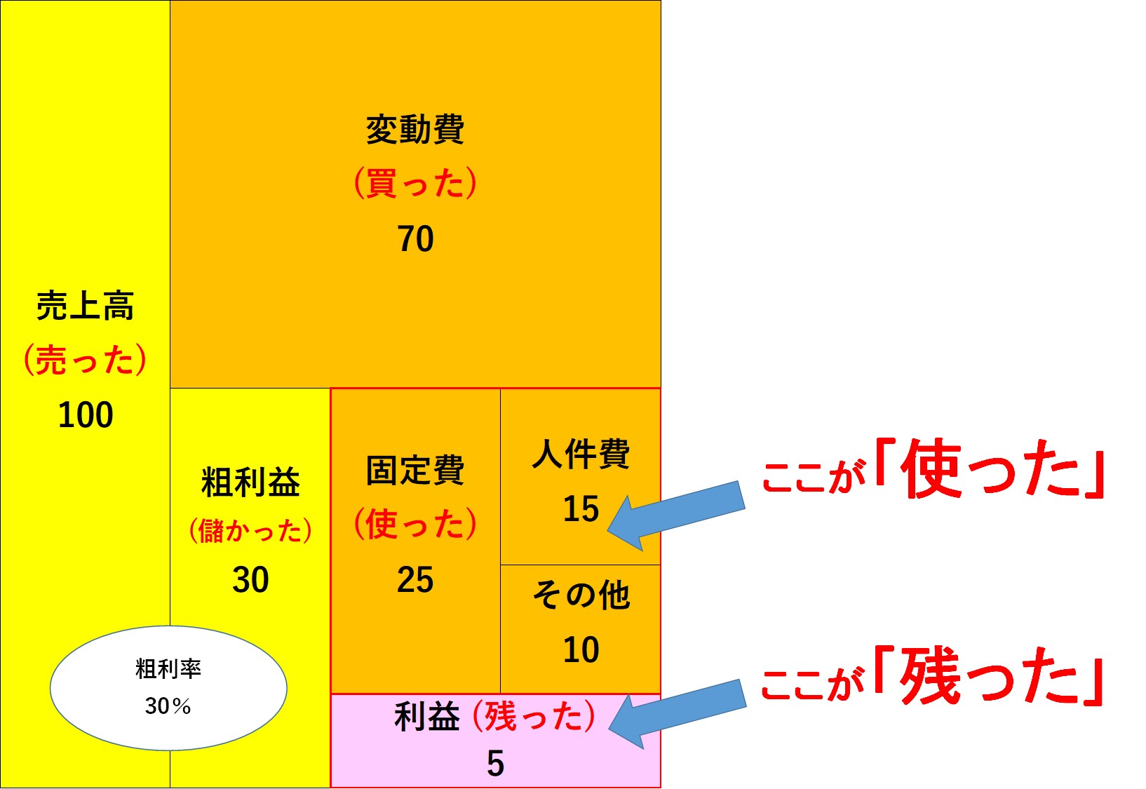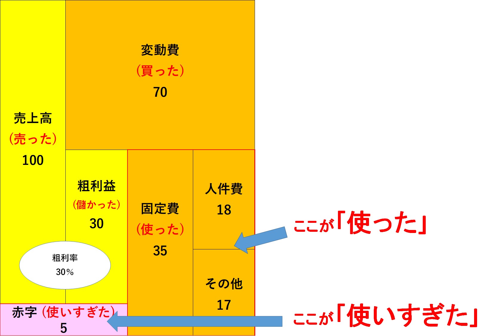 使って(固定費)、残った(利益) or 使いすぎた(赤字)