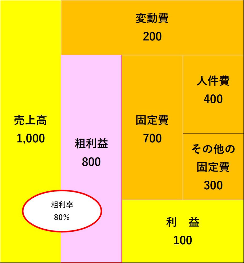 (一般的に、歯科医、医業、経営コンサル事業などがこれくらいの粗利率です。)