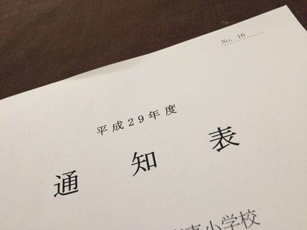 子どもが通知表を見て
