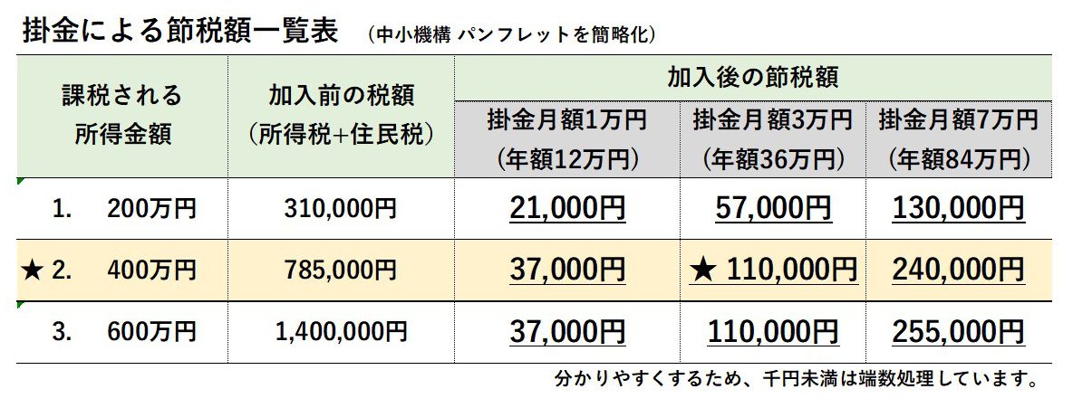 そのため、給料や儲けが多いほど、同じ掛け金でも節税額が高くなります。