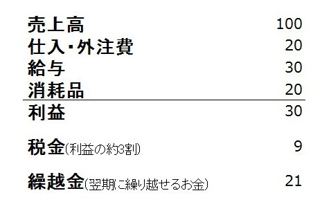 数字と勘定科目を簡略化しています。